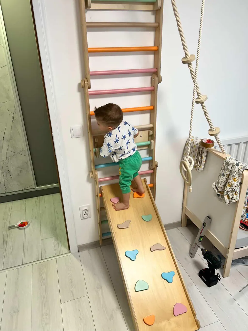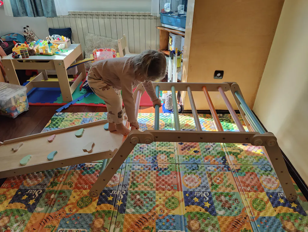 Multifunktionales Design – lässt sich in Sekundenschnelle von einer schwedischen Kletterwand in ein Bodenklettergerüst verwandeln.