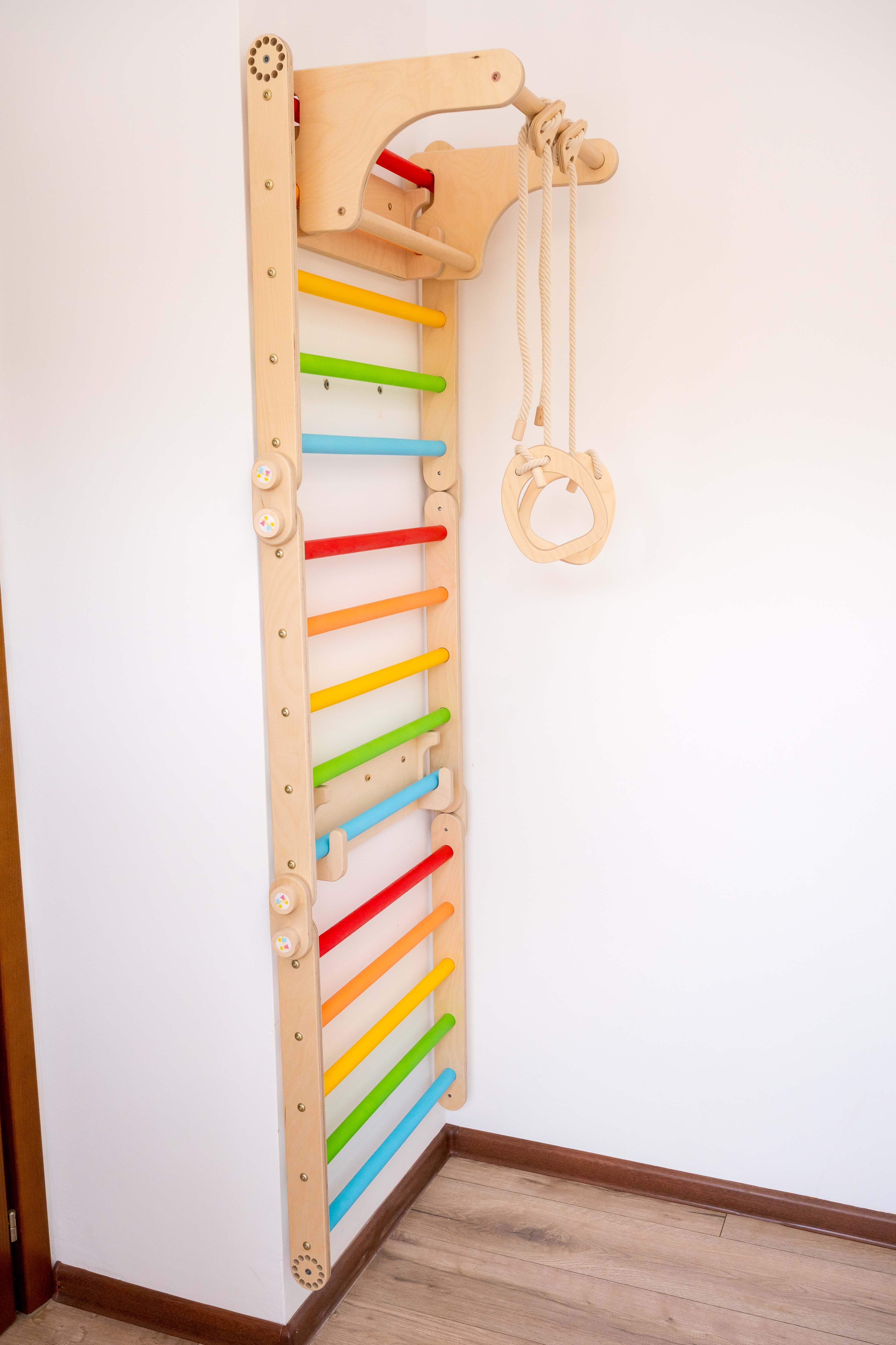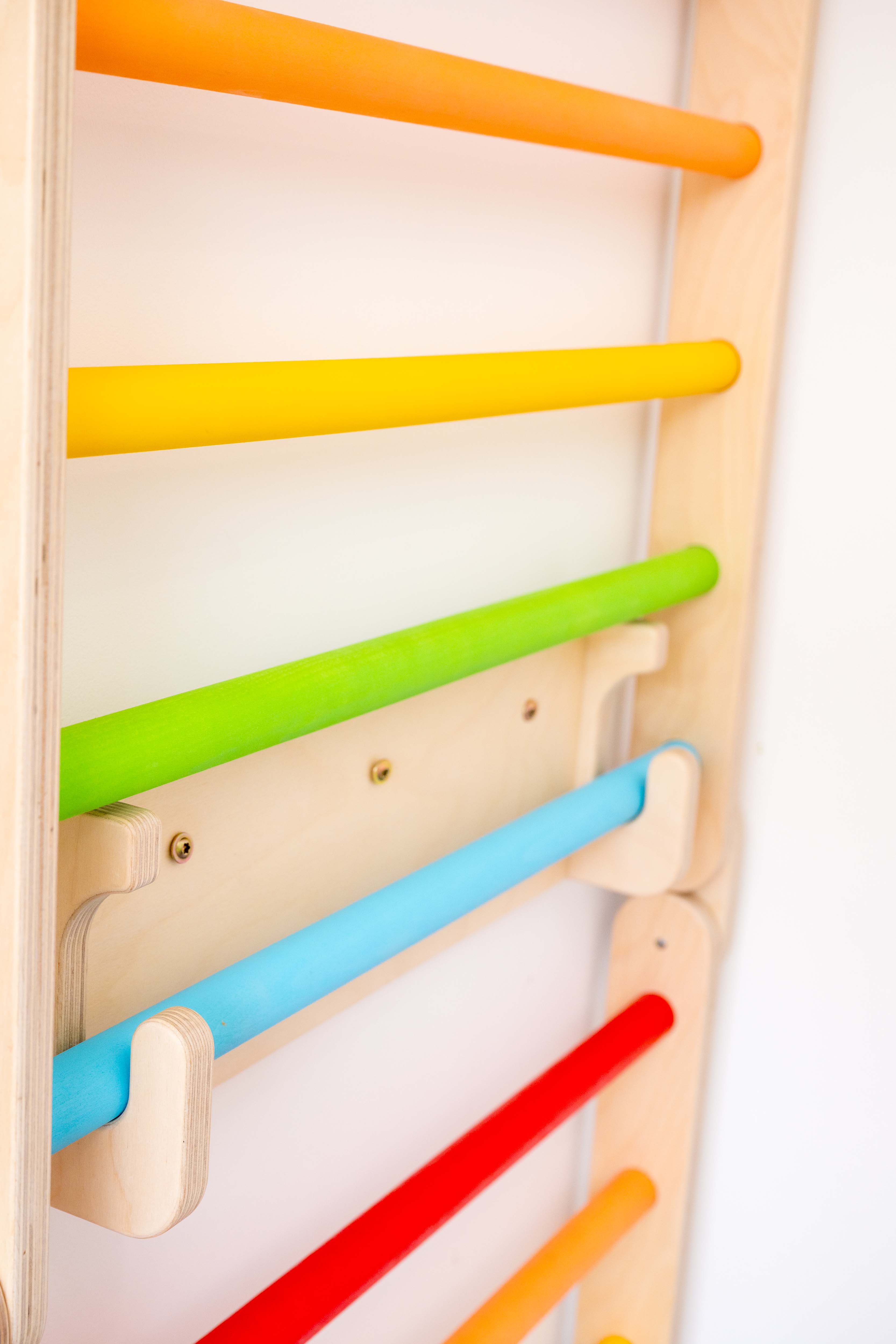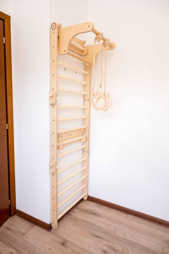 Yes, even the little ones can now have their own home gym! The Swedish Wall is a fantastic way to make playtime more dynamic, focusing on your child’s physical development and muscle strength. Gone are the days of play limited to the floor — thanks to our multifunctional climbing system that transforms from a Swedish wall into a floor climber and back, children can now reach new heights safely and comfortably at home.