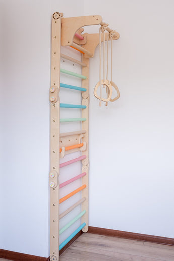 Yes, even the little ones can now have their own home gym! The Swedish Wall is a fantastic way to make playtime more dynamic, focusing on your child’s physical development and muscle strength. Gone are the days of play limited to the floor — thanks to our multifunctional climbing system that transforms from a Swedish wall into a floor climber and back, children can now reach new heights safely and comfortably at home.