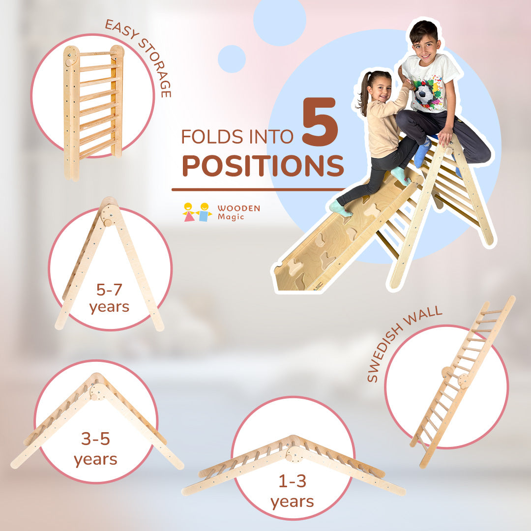 Vielseitiges Design: Dank seiner einzigartigen Faltfunktion lässt sich dieses Kletterdreieck einfach verstauen oder mitnehmen. Seine Vielseitigkeit ermöglicht eine breite Palette an Aktivitäten vom Klettern bis zum Rutschen und sorgt so dafür, dass es mit Ihrem Kind mitwächst.