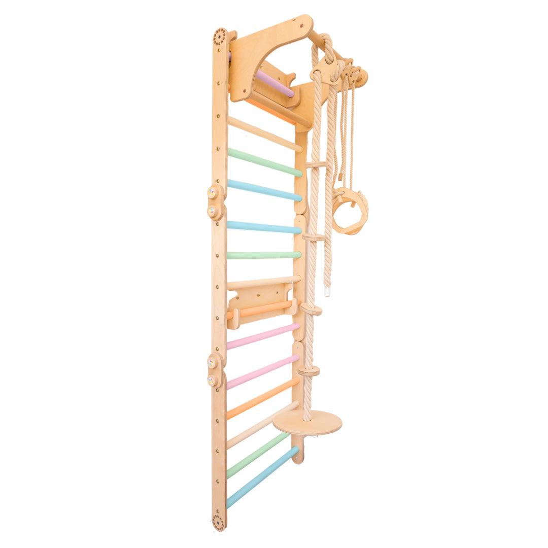 Verschönern Sie den Indoor-Spielbereich Ihres Kindes und wecken Sie die Begeisterung für Bewegung mit unseren Turnringen aus Holz für die Turnwand. Diese formschönen Turnringe fügen sich nahtlos in jede Turnwand ein und bieten eine vielseitige und motivierende Ergänzung für das Fitnessprogramm Ihres Kindes.